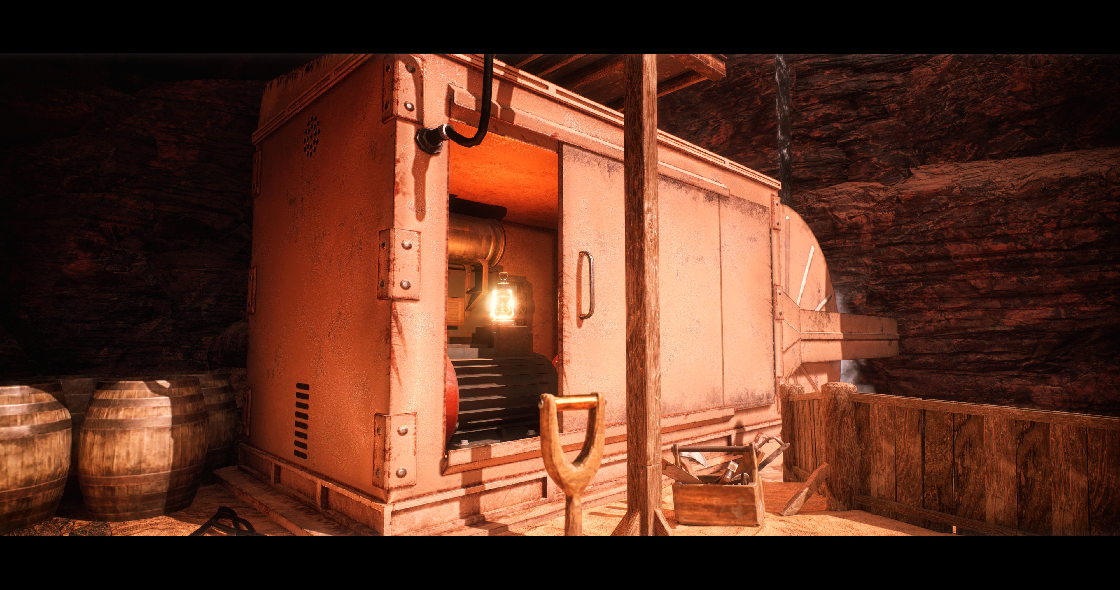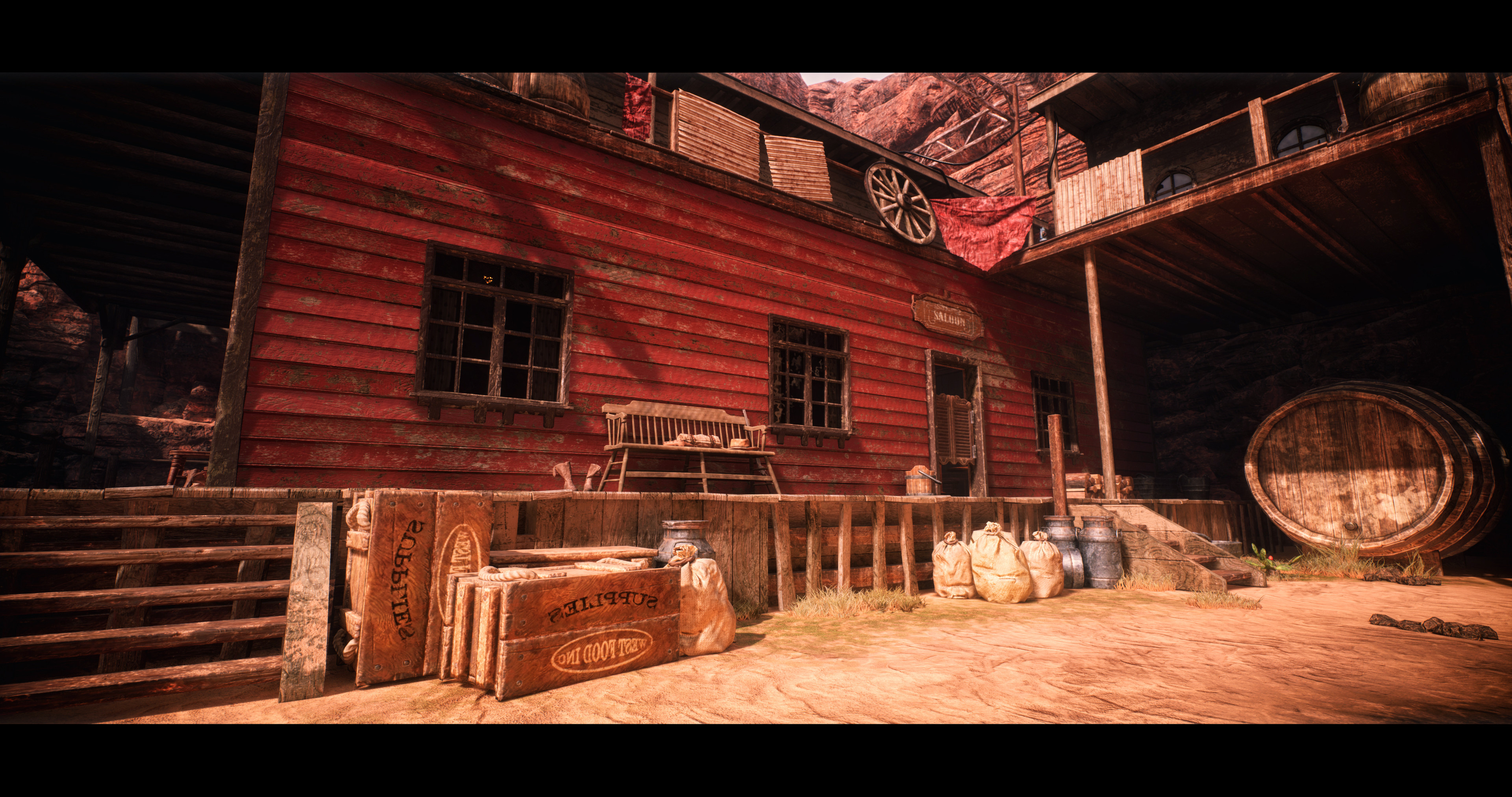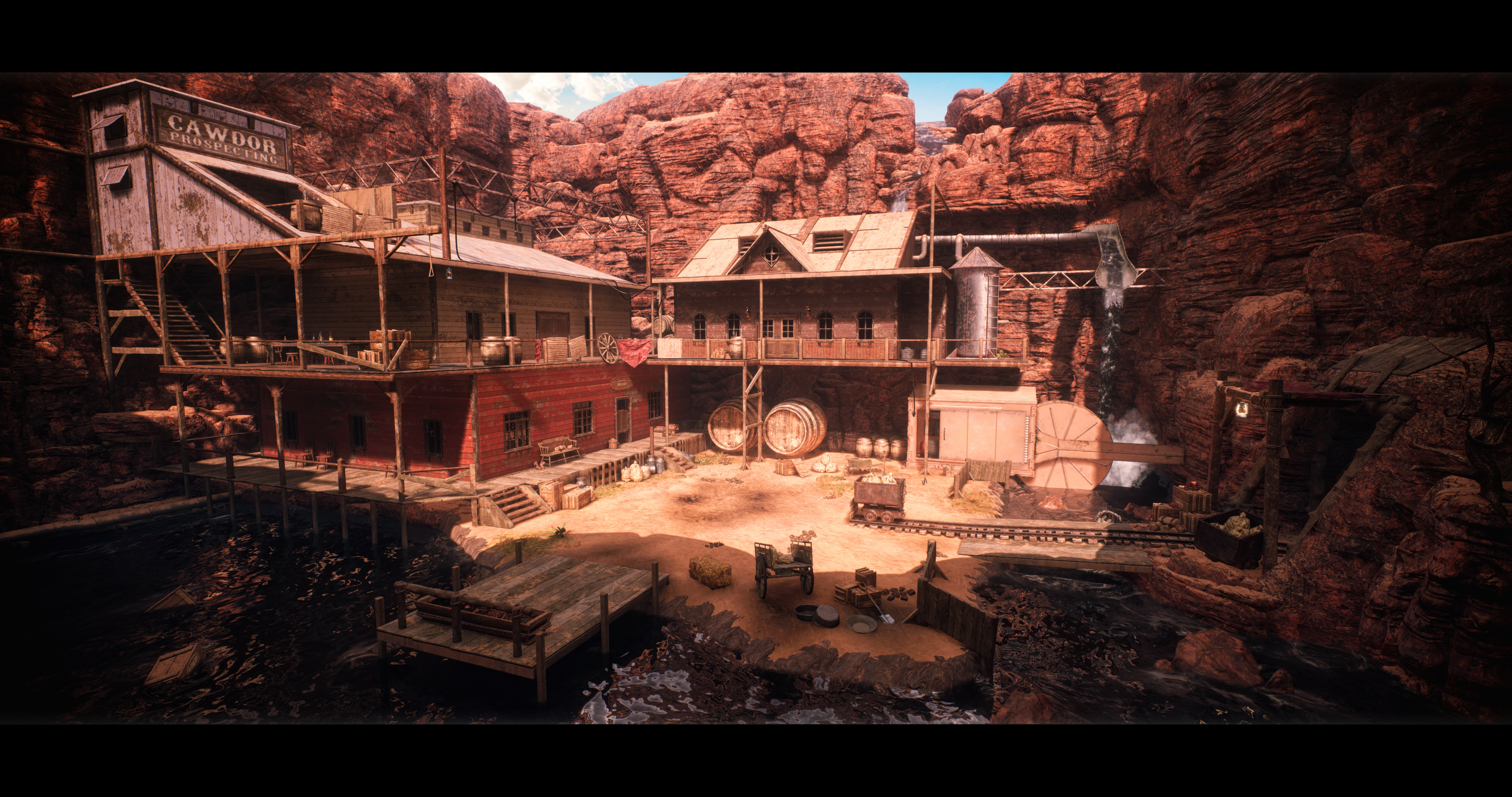 In this project I utilized modular building to create a western bandit compound nestled in a canyon. I combined construction scripts and a complex water shader to create the flowing water in this scene. I modeled and textured props to fill out the space and give it life. Finally I used Lumen to light this environment and give it depth.