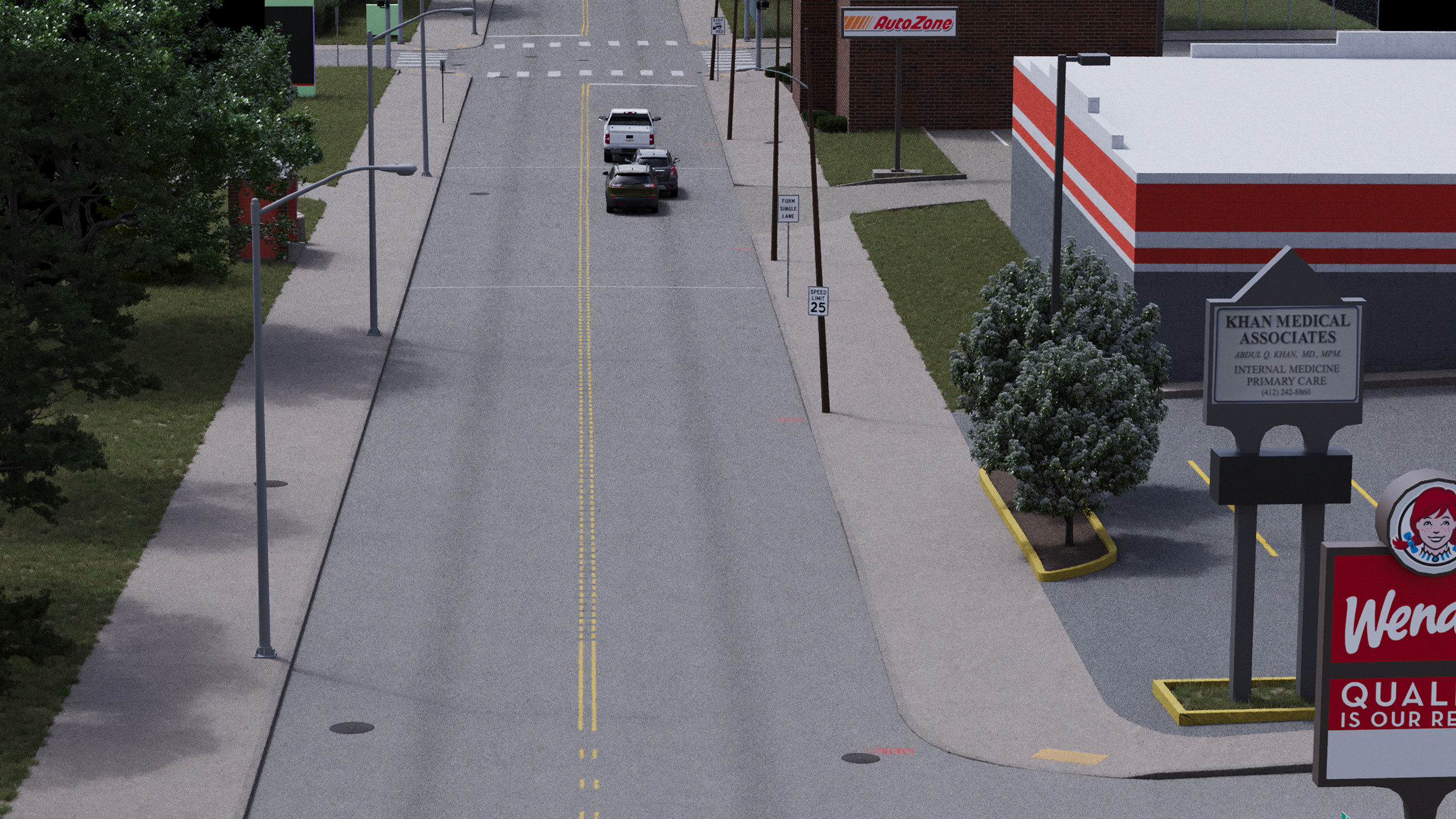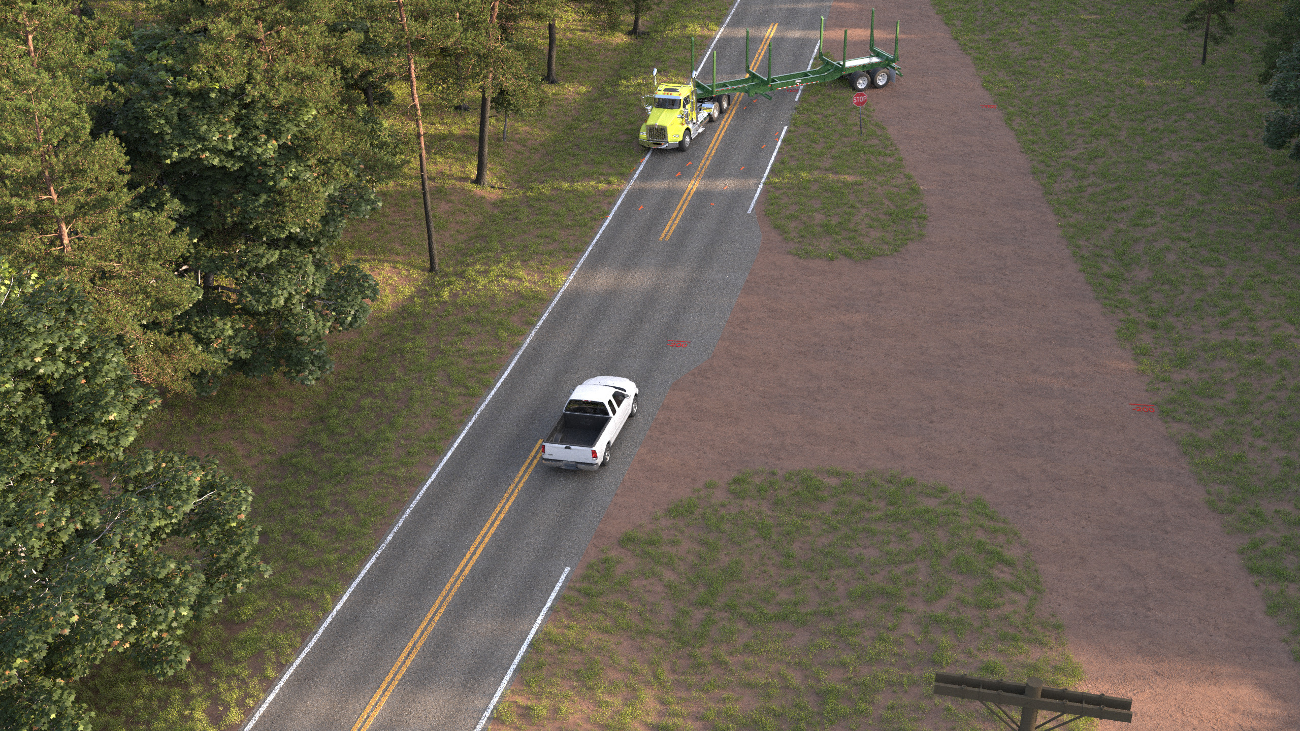 I worked for a company that does 3D vehicle accident reconstructions. As part of the 3D team I was responsible for modeling the road/scene of the accident to exact detail. I would then work with engineers to figure out the vehicle motion and add that motion into the 3D scene. Vehicle were bought but all material work was done by me on them. Work was done inside 3Ds Max and the Corona Render was used for images.